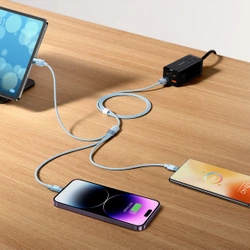 Multifunkční nabíjecí kabel USB-A až Micro-USB, Lightning, USB-C by měl být dostupný každému uživateli elektronického zařízení. Produkt je ideální pro napájení oblíbených elektronických zařízení, jako jsou telefony, sluchátka, lampy, malá elektronická zařízení. Díky vestavěným ochranám nedochází k poškození ani přehřívání jeho konstrukce, což se promítá do efektivity jeho provozu.