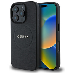 • Etui Guess iPhone 16 Pro Max czrny/black MagSafe PU Grained Gold Ring