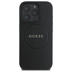 Etui Guess iPhone 16 Pro Max czrny/black MagSafe PU Grained Gold Ring