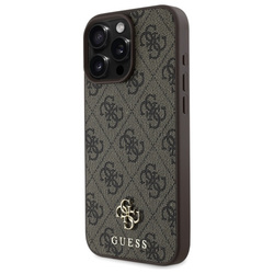 W dolnej części etui znajdują się logo Guess oraz złota naszywka 4G, które subtelnie podkreślają prestiż tego etui.