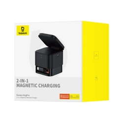 Baseus BS-W531 bezdrátová nabíječka 2 v 1, kompatibilní s MagSafe a Qi, se zatahovacím kabelem USB-C - černá