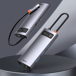 Baseus Metal Gleam 6v1 multifunkční HUB USB Typ C - USB Typ C Napájení 100 W / HDMI 4K 30 Hz / 3x USB 3.2 Gen 1 / RJ45 1 Gbps