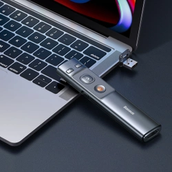 Baseus Orange Dot multifunctional remote control for presentations, with red laser pointer, rechargeable (gray)