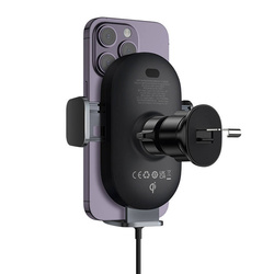 Travel safely and comfortably with the Baseus LightChaser car mount. Its sturdy design provides reliable support during any trip. The automatic clasps and adjustability guarantee easy handling and will securely hold your phone in place. The Baseus LightChaser holder will provide you with a hassle-free navigation experience, and what's more, it will allow you to inductively charge your phone!