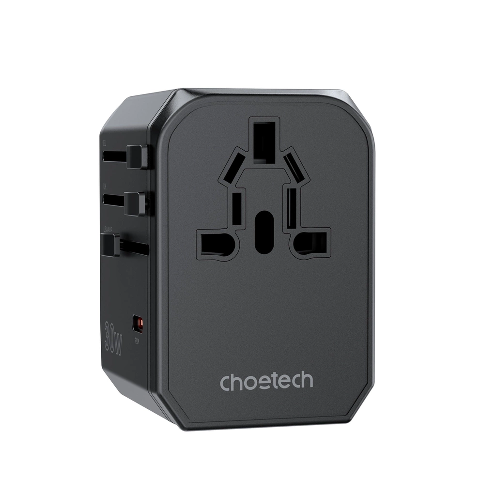 Cestovní nabíječka Choetech PD6041 s konektory USB-C a USB-A a 3 zástrčkami (US, EU, UK, AU) - černá