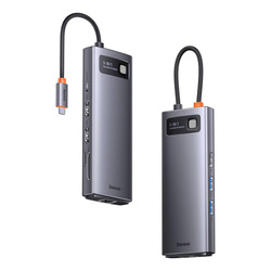 Dokovací stanice Baseus Metal Gleam Series HUB 9 v 1 USB typu C – 2 x HDMI / 2 x USB 3.2 Gen. 1/1 x USB 2.0 / 1 x napájení / 1 x čtečka karet SD / 1 x čtečka karet TF / 1 x RJ-45 šedý (WKWG060013)