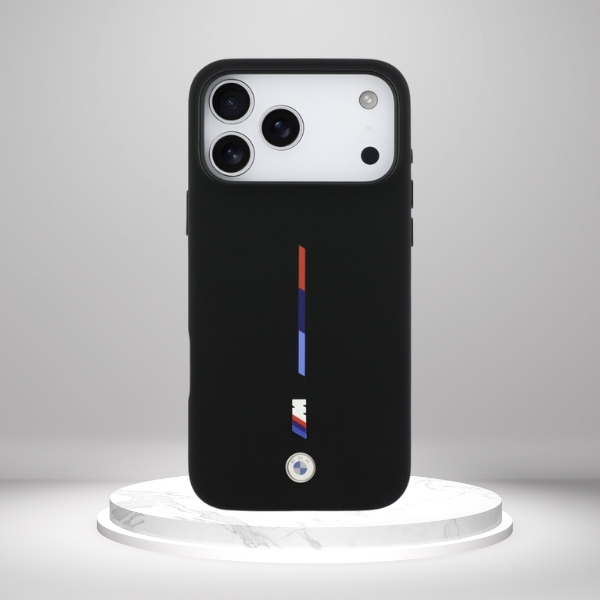 • Etui BMW M Silicon Tricolor Line MagSafe do iPhone 17 Pro Max czarny