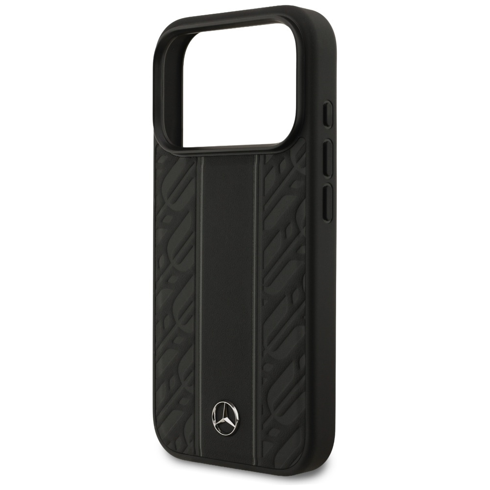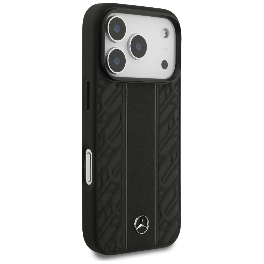 Etui Mercedes Leather Laurel Leaves Stripes MagSafe do iPhone 17 Pro czarny