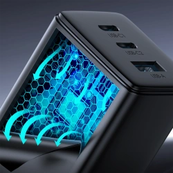 Dwa porty USB-C oraz jeden USB-A pozwalają ładować kilka urządzeń naraz z inteligentnym rozdzielaniem mocy, bez obaw o spadek prędkości ładowania.