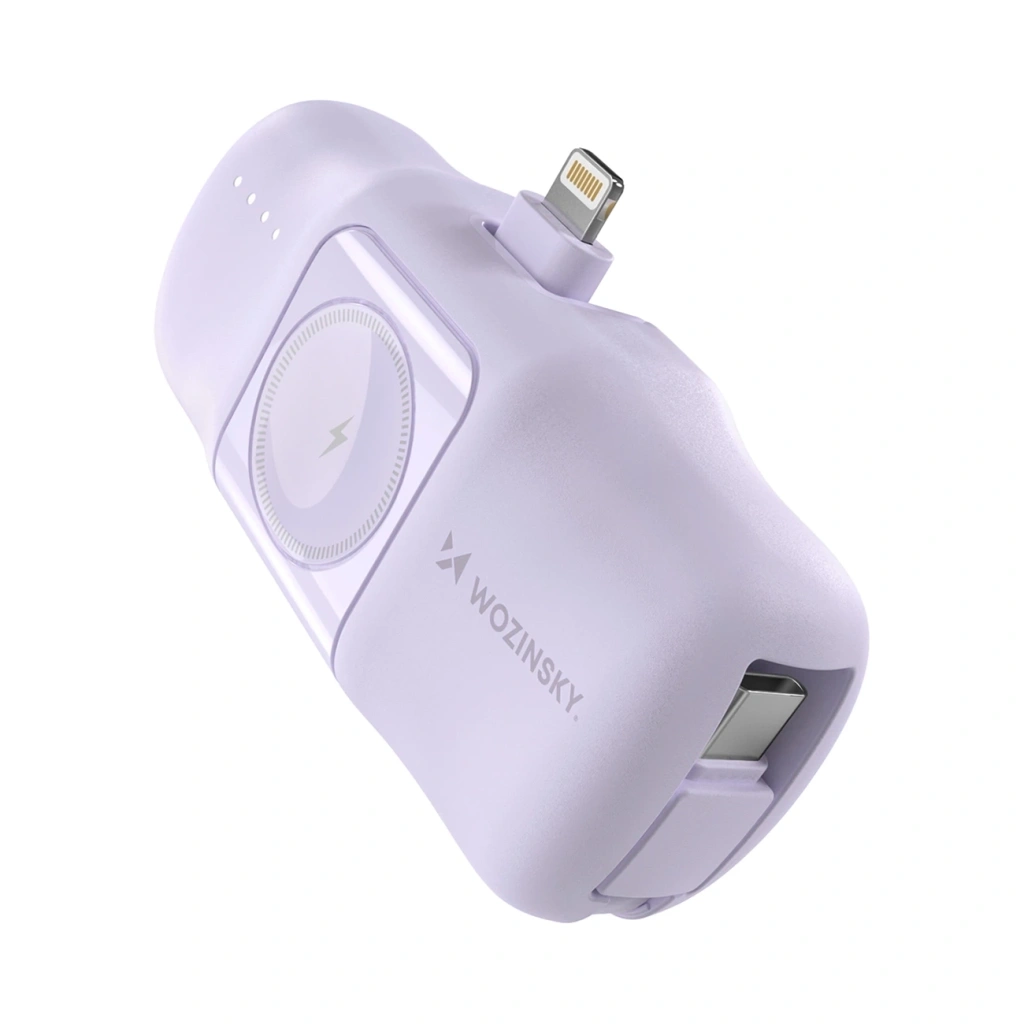 • Mini powerbank Wozinsky WF16-YLS 5000mAh 15W Lightning z wbudowanym kablem USB-C i ładowarką do Apple Watch - fioletowy