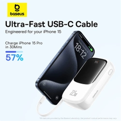 Wbudowany kabel USB-C zapewnia, że powerbank Baseus QPow Pro+ jest zawsze gotowy do akcji - niezależnie od tego, dokąd zmierzasz. Sprawdzi się na uczelni, na wyjeździe służbowym, podczas wakacji i we wszystkich innych miejscach, gdzie nie ma komfortowego dostępu do gniazdka. Co ważne, kabel może nie tylko ładować urządzenie zewnętrzne, ale również sam powerbank.