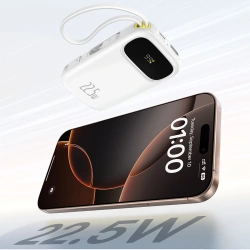 Powerbank Baseus EnerFill FC31 20000mAh 22.5W z wyświetlaczem cyfrowym i 2 wbudowanymi kablami (USB-C + Lightning) - biały
