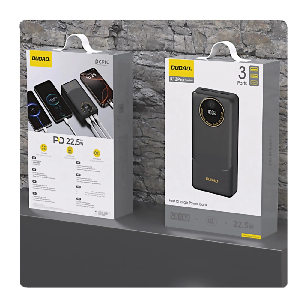 Powerbank Dudao K12Pro 22,5W PD 20000mAh USB-A, USB-C - czarny