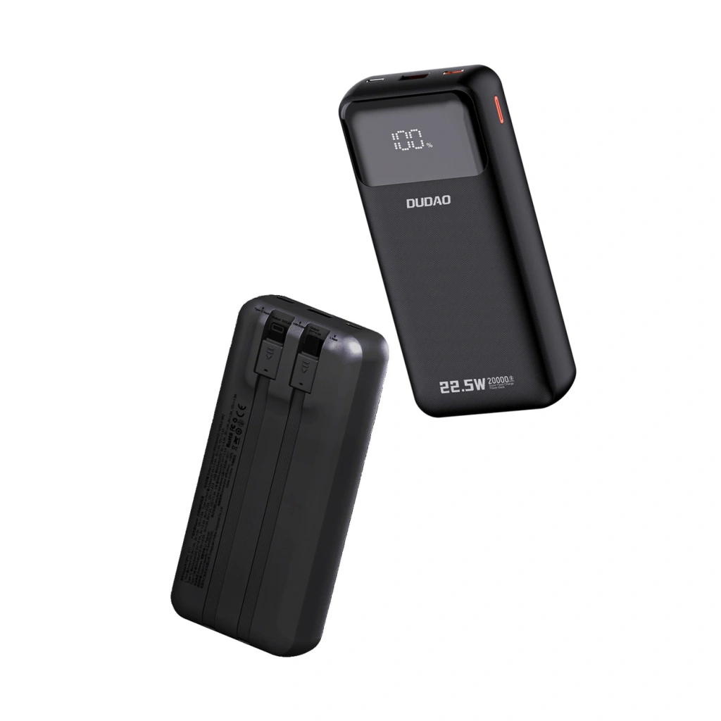 Powerbank Dudao K15Pro o pojemności 20000 mAh i mocy do 22.5W, z portami USB-C / USB-A i wbudowanymi kablami Lightning i USB-C - czarny
