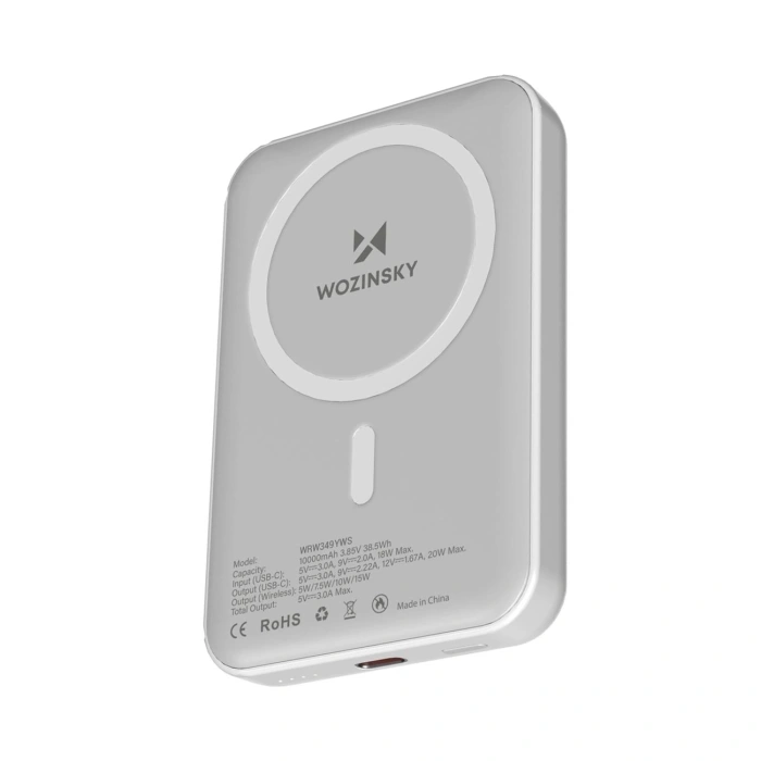 Powerbank magnetyczny Wozinsky WRW349YWS 10 000 mAh - biały