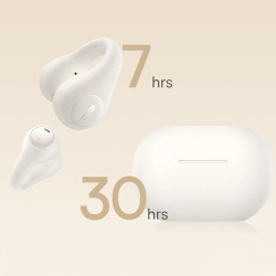 Baseus Bass 15 Clip OWS to bezprzewodowe słuchawki o otwartej konstrukcji, które pozwalają słuchać muzyki i jednocześnie pozostawać w kontakcie z otoczeniem. Lekkie, ergonomiczne i niezwykle wygodne – idealne do codziennego użytku, sportu i pracy. Zastosowana technologia kierunkowej akustyki zapewnia czysty, donośny dźwięk z głębokim basem, a nowoczesny chip Bluetooth 5.4 gwarantuje stabilne połączenie i niskie opóźnienia. W zestawie znajduje się kabel Baseus Simple USB-C 3A (30 cm), który umożliwia szybkie ładowanie etui i innych urządzeń mobilnych.