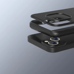 Pokrowiec składa się z elastycznej ramki z TPU i sztywnych plecków z PC. Ramka ułatwia zakładanie etui na telefon, a plecki usztywniają całą konstrukcję. Narożniki są ukształtowane w taki sposób, żeby działały jak zderzaki w samochodzie i absorbowały energię uderzenia. Podwyższone ranty dookoła tylnego aparatu i ekranu oddzielają te elementy od podłoża, na którym mogły by zostać porysowane.