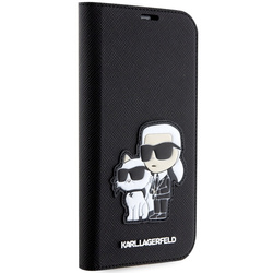 Hülle Karl Lagerfeld KLBKP14XSANKCPK iPhone 14 Pro Max 6,7" Buchcase schwarz/schwarz Saffiano Karl & Choupette Case