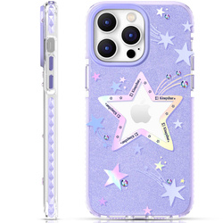 Třpytivé pouzdro na iPhone 14 Plus zdobené krystaly ze série Kingxbar Heart Star ve fialové hvězdné barvě