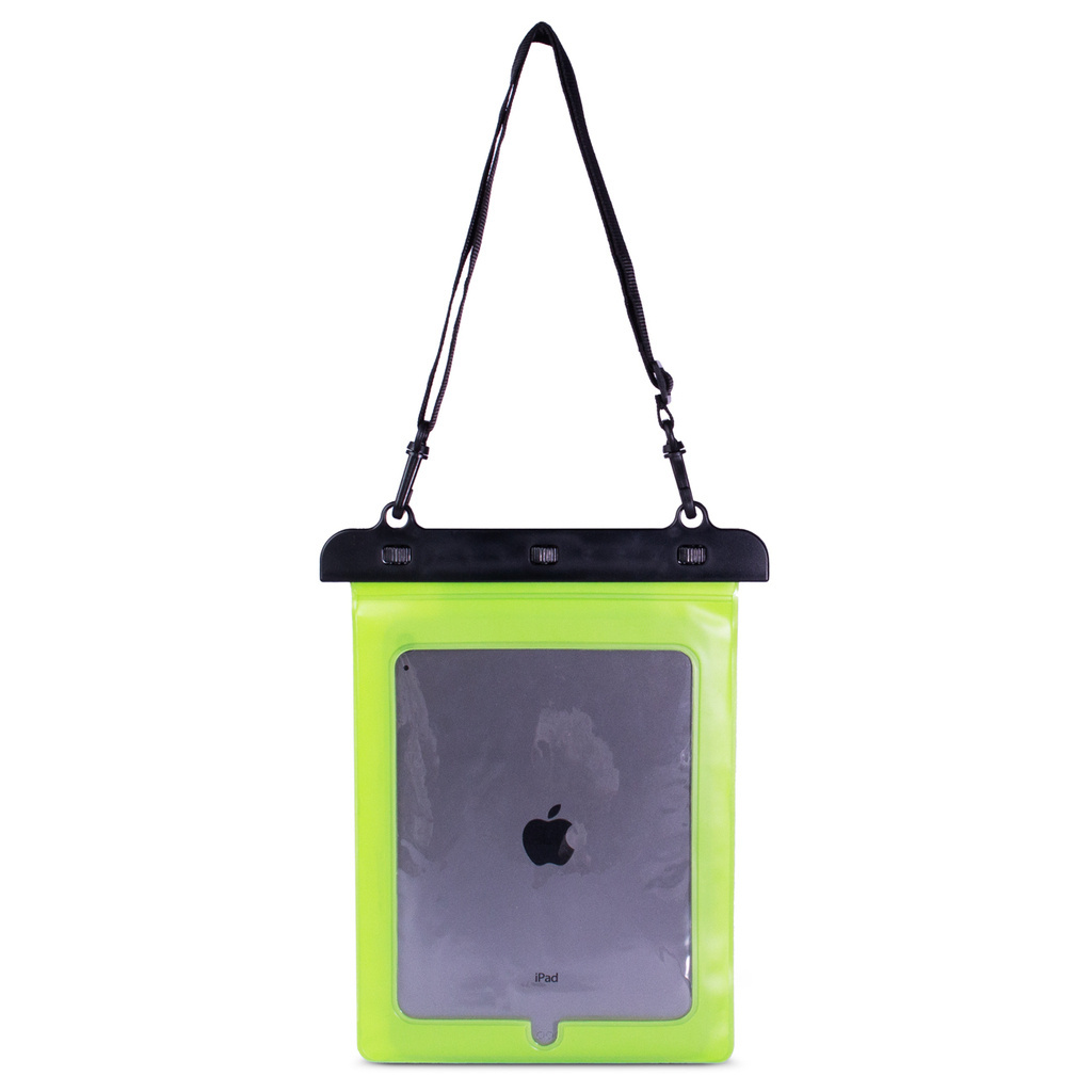 Univerzální pouzdro ochrání váš tablet potřísnění, nečistota nebo lehké poškození. Sada obsahuje připevněný popruh pro lepší uchopení. Vodotěsné pouzdro je nezbytným doplňkem pro lidi, kteří tráví čas aktivně, zejména u vody, v dešti nebo v podmínkách vysoké vlhkosti. Zabraňuje znečištění a zaplavení elektronických zařízení vodou. Snadno se používá a je transparentní, aby bylo možné jej volně ovládat. Dokonce se v něm dá fotit díky průhlednému materiálu na zadní straně.