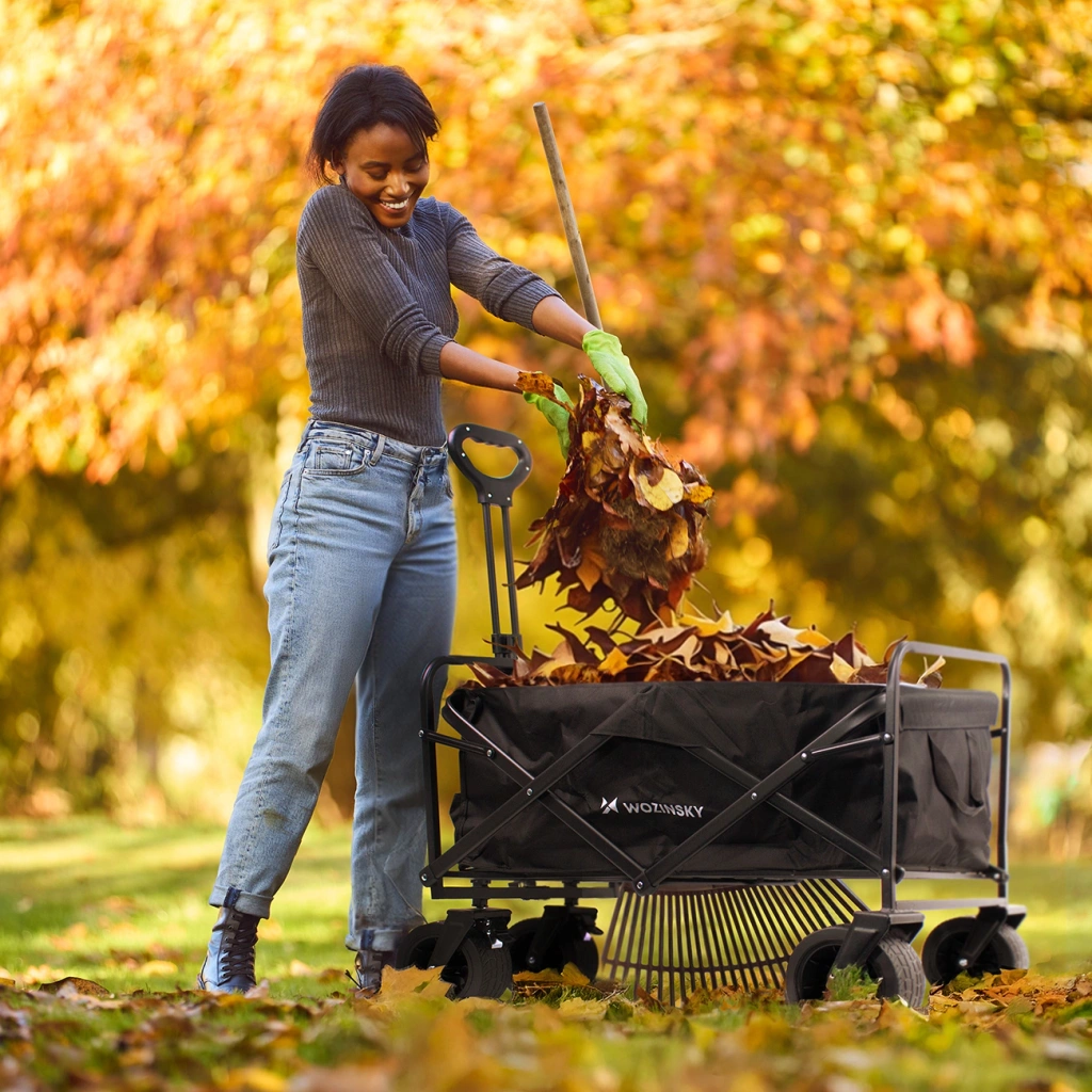 Wózek Wozinsky WZP-100 to niezawodne rozwiązanie do transportu sprzętu, zakupów czy narzędzi – idealny na plażę, kemping lub do ogrodu. Dzięki stalowej konstrukcji malowanej proszkowo i ładowności do 100 kg poradzi sobie z ciężkimi ładunkami w każdych warunkach. Podwójna tkanina Oxford 600x300D gwarantuje odporność na przetarcia i wilgoć, a szerokie koła umożliwiają płynne prowadzenie po piasku, trawie czy kostce. W zestawie znajduje się elastyczna siatka zabezpieczająca przewożone produkty oraz pokrowiec ochronny. Składany mechanizm sprawia, że wózek jest kompaktowy i łatwy w przechowywaniu – gotowy zawsze, gdy go potrzebujesz.