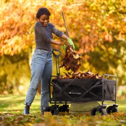Rama z malowanej proszkowo stali zapewnia wyjątkową trwałość i odporność na korozję. Wózek bez problemu poradzi sobie z obciążeniem do 100 kg – idealny do transportu ciężkich rzeczy w plenerze i w ogrodzie.