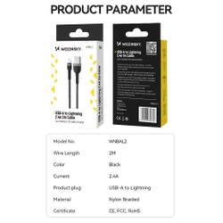 Wozinsky WNBAL2-Kabel mit USB-A - Lightning 2,4A-Anschlüssen, 2 m lang - Schwarz