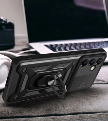 Entdecken Sie das Hybrid Armor Camshield Case – die perfekte Lösung für alle, die ihr Samsung Galaxy schützen möchten S24 FE in jeder Situation. Dank seiner verstärkten Konstruktion bietet dieses Gehäuse einen hervorragenden Schutz vor Beschädigungen und Kratzern. Die integrierte Kameraabdeckung bewahrt Ihre Objektive sicher auf, indem sie sie vor Schmutz und Rissen schützt. Der Metallring dient nicht nur als bequemer Fingergriff, sondern auch als praktischer Ständer, mit dem Sie bequem Filme schauen oder Texte auf dem Bildschirm lesen können. Perfekt abgestimmte Ausschnitte bieten vollen Zugriff auf alle Telefonfunktionen.