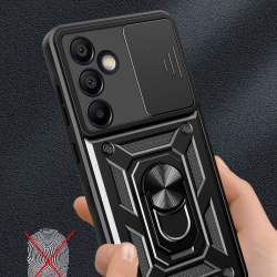 Fall Hybrid Armor Camshield mit Kameraabdeckung und Metallring für Samsung Galaxy S24 FE - Schwarz