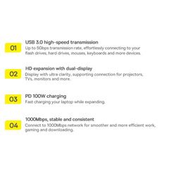 Wenn Sie direkt von Ihrem Laptop aus Filme auf dem großen Bildschirm ansehen möchten, könnte es nicht einfacher sein. Das Gadget ist mit zwei HDMI-Buchsen ausgestattet, dank denen Sie Ihren Laptop bequem an den Fernseher anschließen und hochwertige Filme genießen können. Wenn ein weiterer Monitor angeschlossen ist, kann der HUB außerdem in den folgenden Modi betrieben werden: Bilderweiterung oder Kopieren.