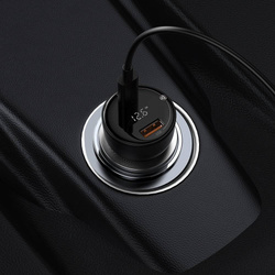 A car quick charger is user-friendly. You only need to connect it to the standard cigarette lighter socket in your car, required parameters: 12/24 V. There are two ports in the upper part of the item, one traditional USB and one USB Type C. This solution lets you charge two devices at a time. Thanks to this, you can refill your smartphone battery and charge other passenger’s unit.