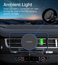 Der Choetech T205-F-Halter lädt Ihr Telefon effektiv mit bis zu 15 W auf. Ein speziell entwickelter Clip mit rutschfestem Silikon und einer Doppelverriegelung sorgt für Stabilität auf verschiedenen Lüftungsgittertypen. Der Griff ist außerdem mit einem zarten LED-Licht ausgestattet, das nicht nur das Auffinden des Griffs im Dunkeln erleichtert, sondern auch für eine angenehme Atmosphäre bei nächtlichen Fahrten sorgt.