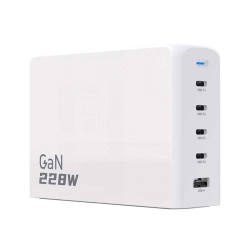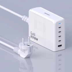Das Dudao A228EU GaN-Ladegerät ist mit der neuesten GaN-Technologie ausgestattet. Es unterstützt die Power-Delivery-Technologie und eine Leistung von bis zu 228 W und bietet so eine unübertroffene Ladegeschwindigkeit für Ihre Geräte. Mit 1 USB-A-Anschluss und 4 USB-C-Anschlüssen ist es bereit, vier Geräte gleichzeitig aufzuladen. Dank der eingebauten Sicherheitsstufe ist ein effizientes und sicheres Laden gewährleistet.