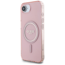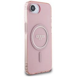 • Etui Guess IML Glitter Circle MagSafe do iPhone 16e różowy