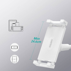 Der flexible Arm ist stabil und flexibel. Es ist ein typischer fauler Halter: Der Kopf dreht sich um 360 Grad, sodass Sie Ihr Telefon, Tablet und sogar die Nintendo Switch-Konsole horizontal oder vertikal platzieren können. Die Backen öffnen sich bis zu einer Breite von 24,6 cm und sind daher mit Geräten von 4,7 - 9,7 Zoll kompatibel.