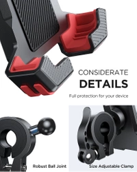 - Vier-Ecken-Schutz: Das innovative Vier-Ecken-Schutzsystem sorgt für umfassende Sicherheit und der leistungsstarke Verriegelungsmechanismus sorgt für einen sicheren Halt Ihres Smartphones während der Fahrt.