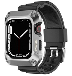 2-in-1 Apple Watch Ultra, SE, 8, 7, 6, 5, 4, 3, 2, 1 (49, 45, 44, 42 mm) Kingxbar CYF134-Serie mit silbernem gepanzertem Stahlgehäuse