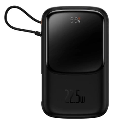 Baseus Qpow Digital Display Powerbank mit Schnellladung 10000mAh 22,5W QC/PD/SCP/FCP mit eingebautem USB-C Kabel schwarz