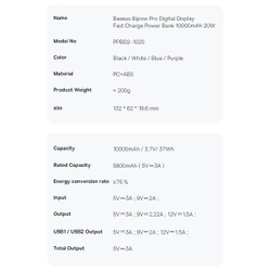 Baseus Baseus Pro 10000 mAh 20 W Violet Powerbank mit USB Typ A - USB Typ C 3A 0,3 m Kabel (PPBD040205)