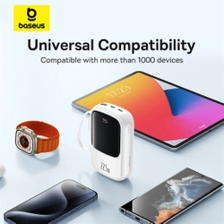 Wbudowany kabel USB-C zapewnia, że powerbank Baseus QPow Pro+ jest zawsze gotowy do akcji - niezależnie od tego, dokąd zmierzasz. Sprawdzi się na uczelni, na wyjeździe służbowym, podczas wakacji i we wszystkich innych miejscach, gdzie nie ma komfortowego dostępu do gniazdka. Co ważne, kabel może nie tylko ładować urządzenie zewnętrzne, ale również sam powerbank.