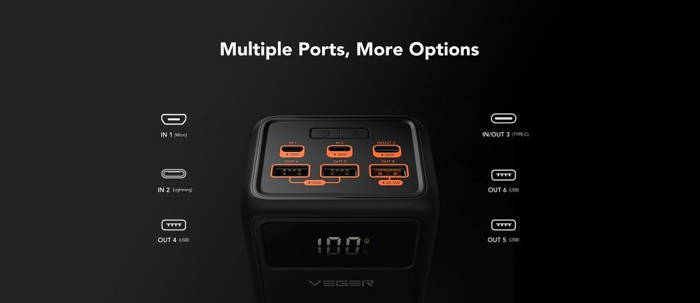 Power bank Veger Tank Lite o pojemności 50 000 mAh to gwarancja szybkiego ładowania w dowolnym miejscu i czasie.
