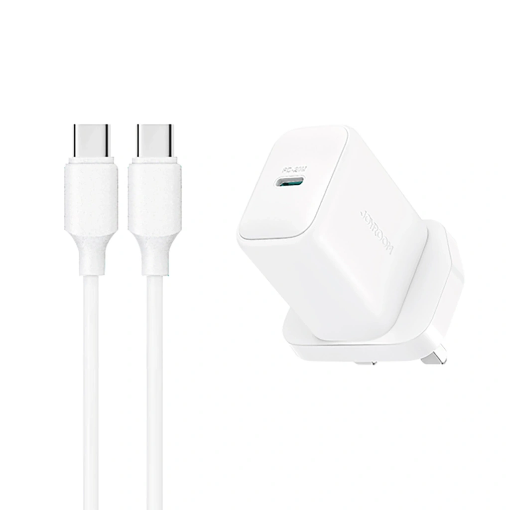 • Ładowarka sieciowa Joyroom JR-TCF20 PD 20W (wtyczka UK) z kablem USB-C 1m - biała