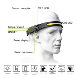 LED-Stirnlampe mit Bewegungssensor, Widerstandsklasse IPX4, USB-C-Anschluss – Schwarz