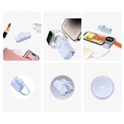 • Mini powerbank Wozinsky WF16-YCS 5000mAh 15W USB-C z wbudowanym kablem USB-C i ładowarką do Apple Watch - niebieski