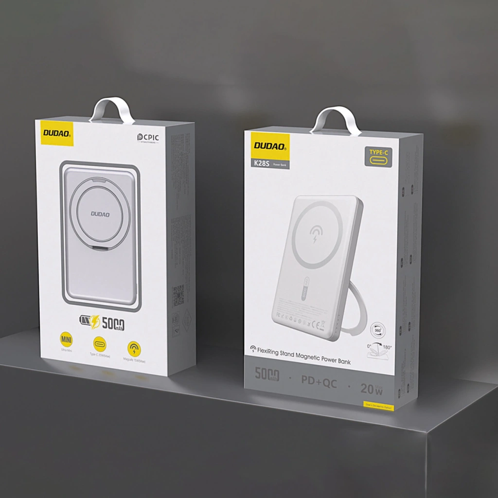 Powerbank Dudao K28S 20W PD 5000mAh to elegancka i funkcjonalna ładowarka, która zapewnia nieprzerwaną energię do Twoich urządzeń mobilnych. Dzięki technologii Power Delivery 20W oraz kompatybilności z MagSafe, jest idealnym wyborem dla osób, które cenią szybkość ładowania i komfort użytkowania. Z wbudowaną podstawką, ten powerbank pozwala nie tylko na wygodne ładowanie, ale także na korzystanie z urządzenia podczas jego ładowania. Niezależnie od tego, czy jesteś w podróży, w pracy, czy w domu, Dudao K28S to niezawodne rozwiązanie do ładowania smartfonów, tabletów i innych urządzeń z możliwością ładowania bezprzewodowego. Spraw, aby każdy dzień był pełen energii z powerbankiem Dudao K28S!