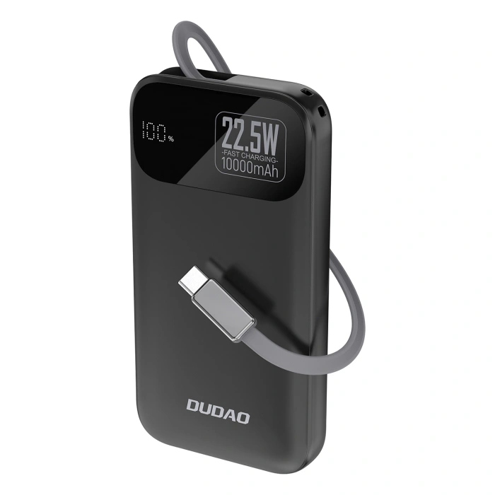 Powerbank Dudao K31 10000 mAh 22,5W PD z wbudowanym kablem - czarny