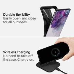 Das Gehäuse der Spigen Rugged Armor-Serie ist ein klassisches und bewährtes Spigen-Produkt. Die Farbe dieses Gehäuses ist Schwarz, diese Farbe ist sehr universell. Das Produkt besteht sehr gut aus dem bewährten Material TPU, und die Akzente, die das Kohlenstoffmuster imitieren, verleihen dem Gehäuse Klasse. Dank der Verwendung der Luftkissentechnologie in diesem Fall ist Ihr Samsung-Smartphone immer geschützt. Der Fall hat das Militärzertifikat MIL-STD 810G-516.6. Dank des Spigen-Gehäuses müssen Sie sich nicht mehr um jeden Tropfen des Geräts kümmern. Die Abdeckung passt perfekt zum Samsung Galaxy S20 Plus und dank der Back-Konstruktion bleibt das Gerät auch nach dem Aufsetzen des Gehäuses funktionsfähig.
