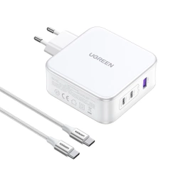 Ladergerät gaN Ugreen Nexode CD289 USB-A/2xUSB-C 140W + kabel USB-C - USB-C 1.5m - weiß