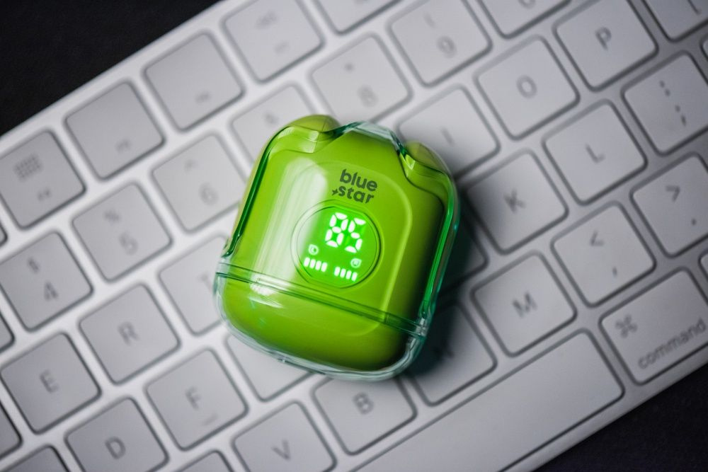 Słuchawki bezprzewodowe BLUE STAR TWS Transparency Fi22 to nowoczesne rozwiązanie dla miłośników muzyki ceniących sobie wygodę i jakość dźwięku. Wykorzystują one technologię Bluetooth 5.3, zapewniając stabilne połączenie oraz płynny przesył strumieniowy audio z kompatybilnymi urządzeniami w zasięgu do 10 metrów. Cyfrowy wyświetlacz wskazuje poziom naładowania słuchawek jak i samego etui.