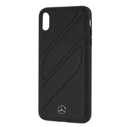 - Skórzane etui ozdobione metalicznym logiem Mercedes-Benz i minimalistycznym wzorem zyskuje efekt trójwymiarowości
